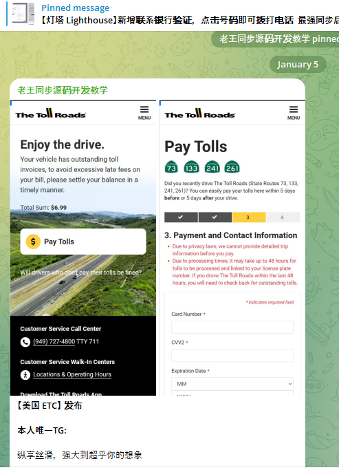 A component of the Chinese phishing kit Lighthouse made to target customers of The Toll Roads, which refers to several state routes through Orange County, Calif.