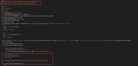 Now, in the final part of this script, we can see that there are multiple commands which were executed from the TA’s end, which perform tasks such as performing system-wide wipe, delete all the backup, check for backup status and much more, making this implant a sort of Wiper, on the victim’s end.