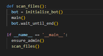 Then, we found a set of interesting functions known as scan_files which basically scans all the files on the target machine and then there is the other function, which is basically performing if the script or the implant PYTIC has certain administrator privileges to perform certain set of tasks.