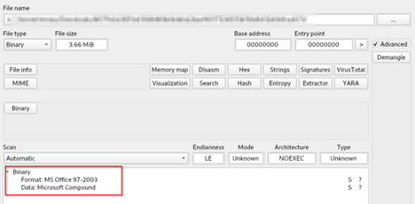 Initially, upon looking into initial file analysis tools, we became quite familiar with the file format, that it is a document file containing macros.