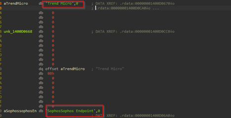 As mentioned, we also saw that it enumerates a total of 28 anti-viruses which include QuickHeal, CrowdStrike, CheckPoint, ESET and much more by enumerating the filenames of the anti-malware agent files, specific folders and much more. The list of anti-malware vendors enumerated by this implant are as follows: