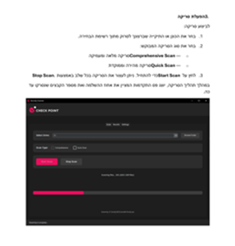 In the next page, the document focuses on providing step-by-step instructions for initiating the scan, including selecting the target drive or folder and choosing between a quick or comprehensive scan mode. It also explains how users can start or stop the scanning process and visually monitor scan progress through an on-screen progress indicator, reinforcing the appearance of a legitimate and functional security tool.