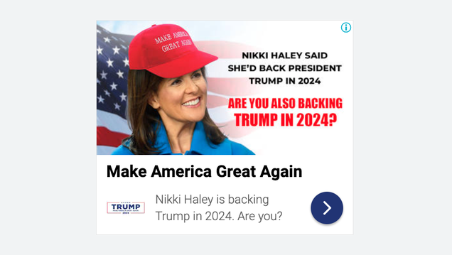 An organization supporting Donald Trump’s 2024 campaign used location data to send misleading ads to people who attended campaign events for Nikki Haley’s nascent presidential run.